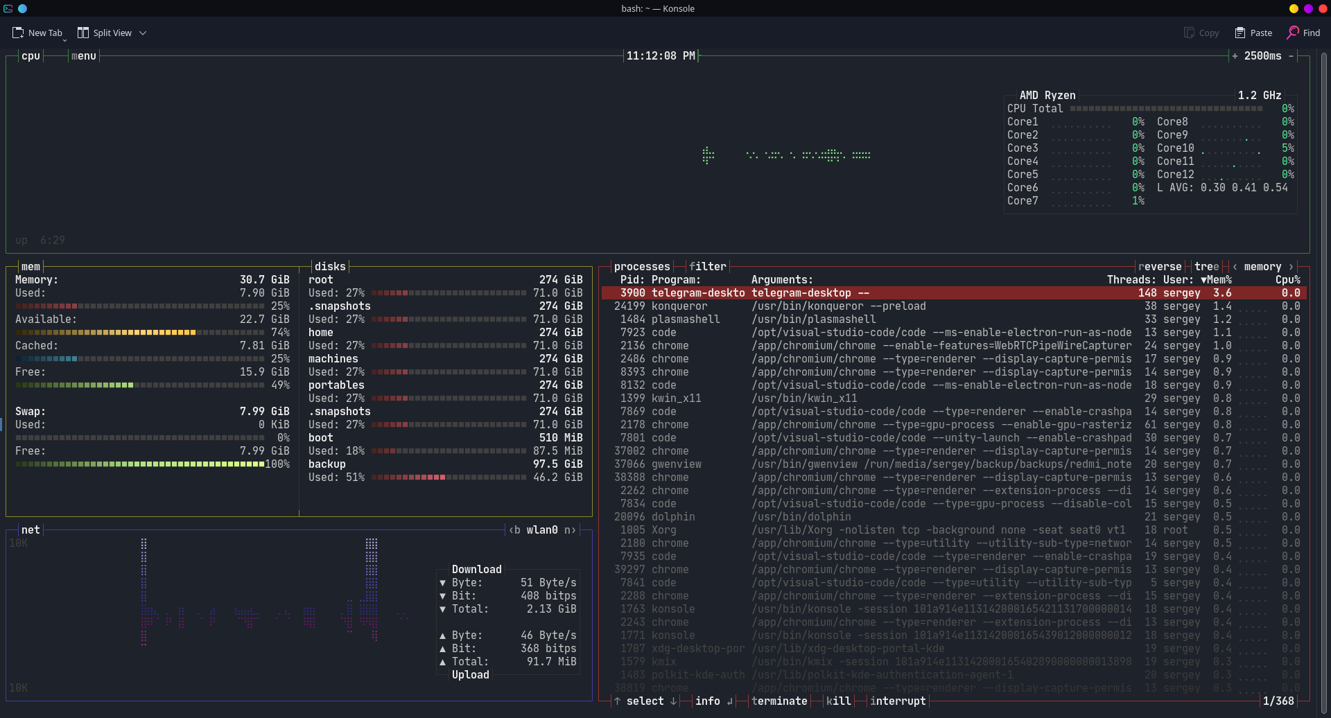 XFCE у меня прожил пару дней… но мне все равно понравилась его нетребовательность к ресурсам. Я понимаю, что для ноута с 12 потоками и 32 гигами оперативки оно не важно…