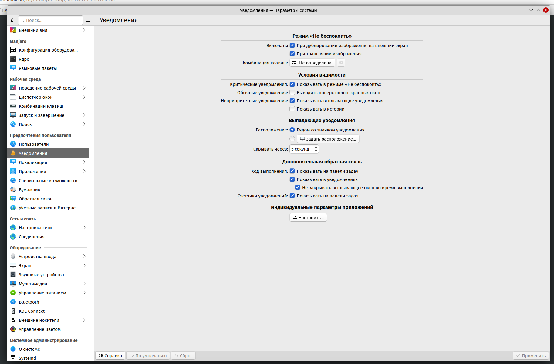 Можно как-то увеличить время видимости нотификации, которая появляется при подключении usb-диска? Пока я доставляю мышь, чтобы открыть корень, нотификация уже исчезает. KDE той версии, которая в KUbuntu 22.04.