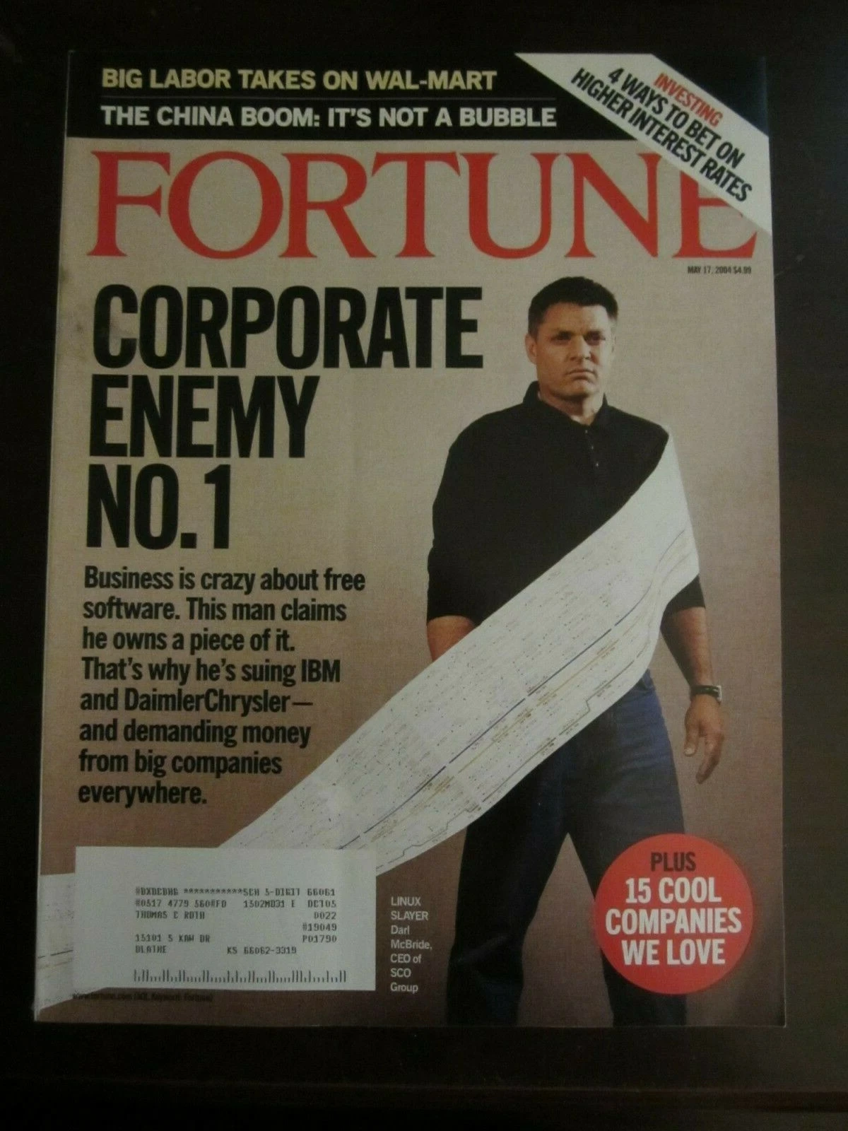 Попытался найти в сети его мемуары, наткнулся на обложку Форбс 2004 года, где его назвали «врагом корпораций №1»: «Бизнес сходит с ума по свободному ПО. Этот человек утверждает, что владеет его частью. Поэтому он […] повсюду требует денег от больших компаний.»