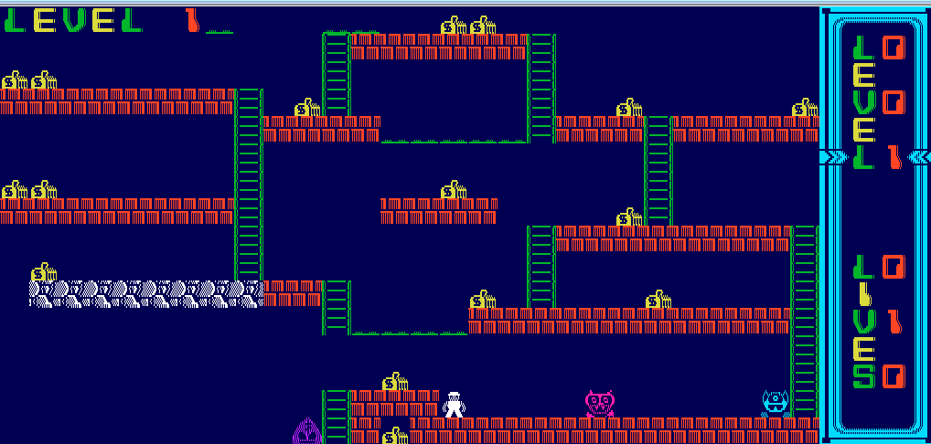 Как-то я заигрался в NES'овский Lode Runner в браузере, потом наткнулся на ремейк оригинальной игры. Поскольку, он был на JavaScript и играть приходилось в богомерзком браузере, то я решил попробовать сделать своего бегуна, с ямками и бегающими мужичками. Писал не один в один как у китайца а делал с нуля, читая его код для понимания как должно быть и стараясь повторить поведение. Ресурсы, понятное дело, взял у него практически без изменения.