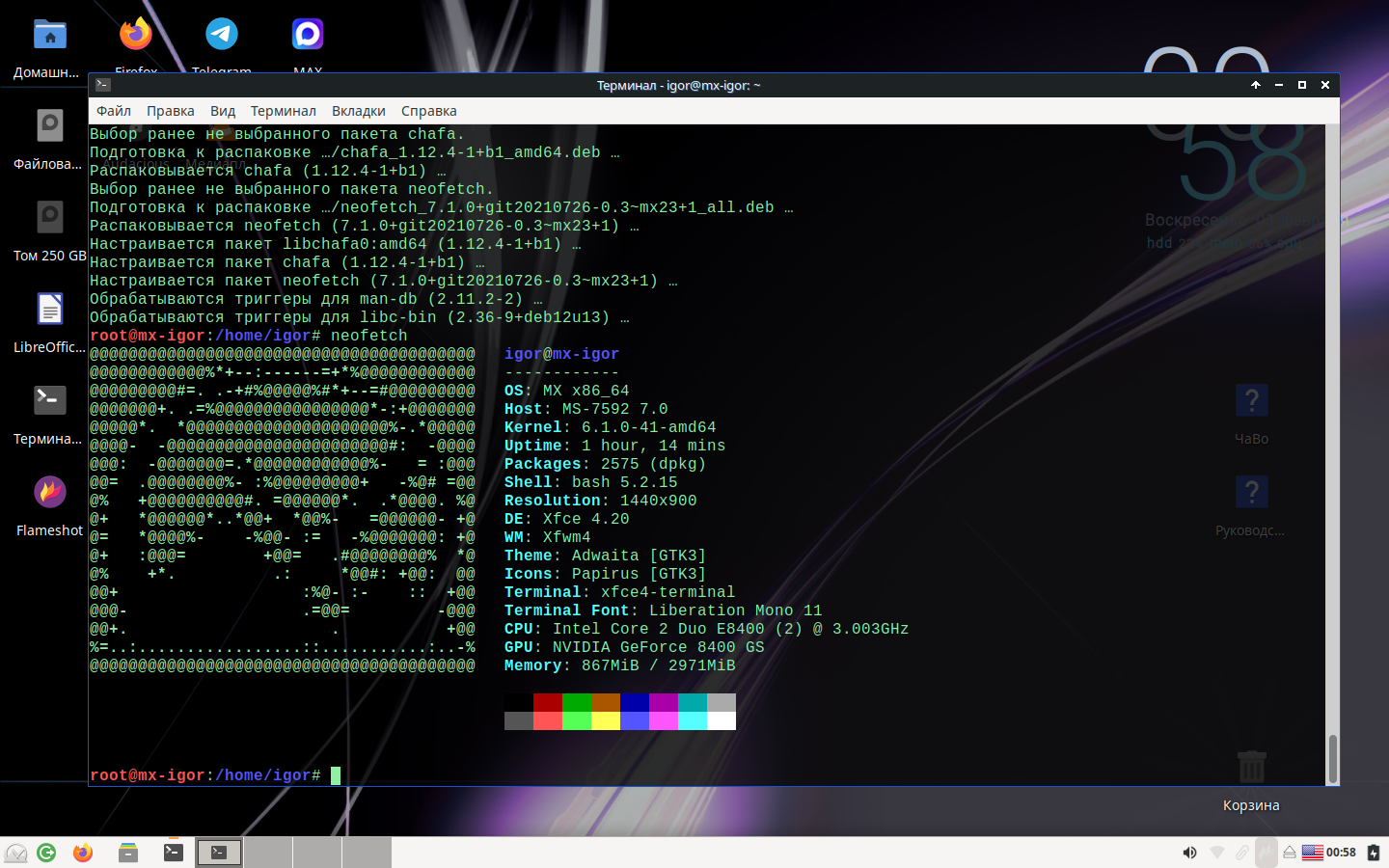 Собрал на коленке из нескольких старых сисблоков, проц прикрутил к мамке на саморезы, работает слегка притомаживая, но терпимо. ОС MX-linux на книгочерве дебиановском. Это для тех, кто собрался старое железо сдавать в утиль. Не спешите, оно ещё работает. Держу у себя как резерв.