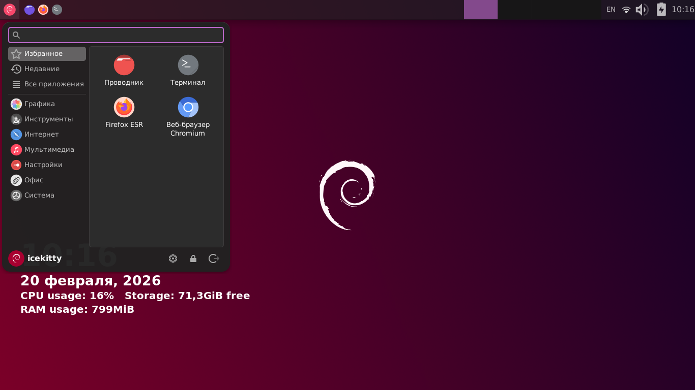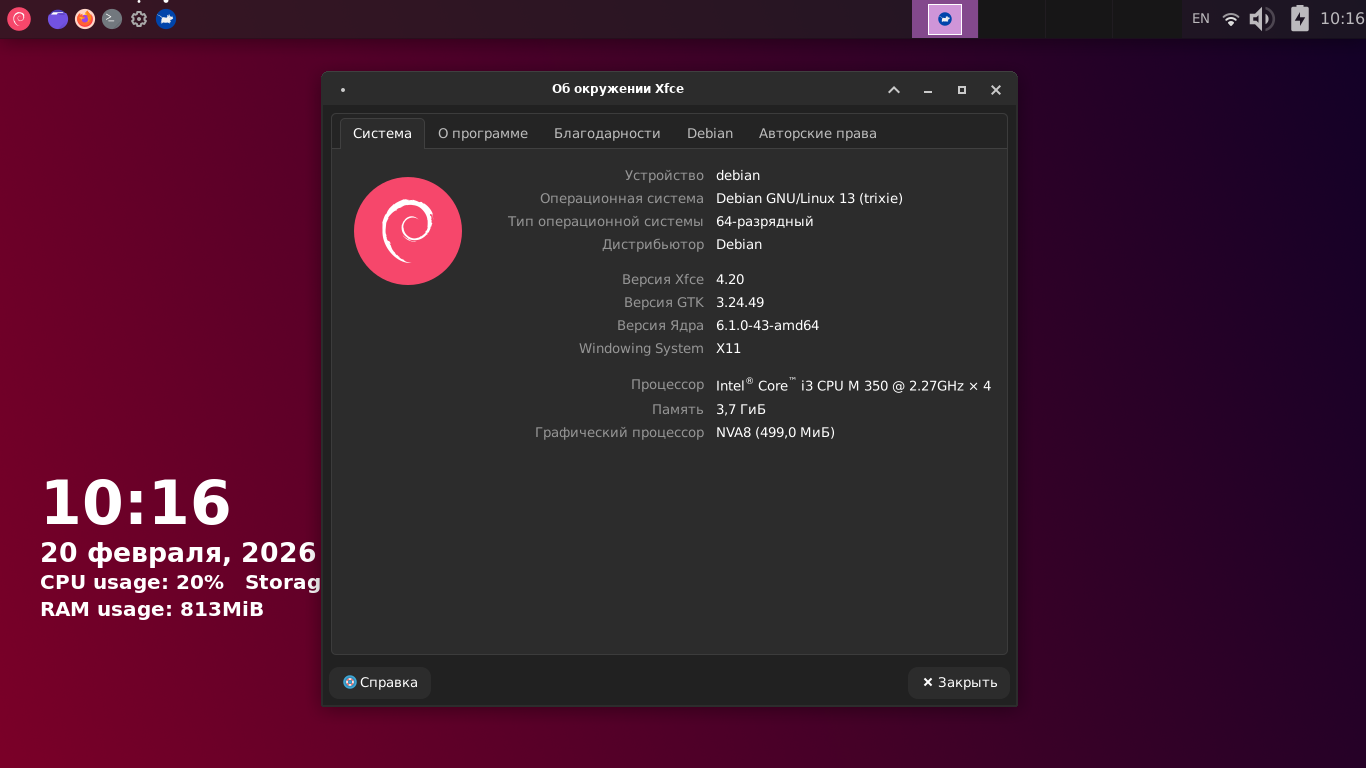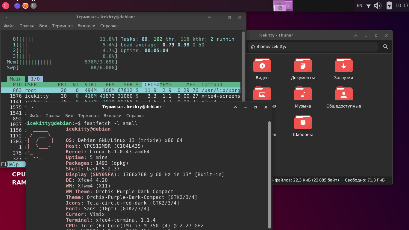 Просто Xfce, ничего лишнего, настроил, чтобы по-человечески выглядел, больше ничего, просто рабочий стол, ничего.