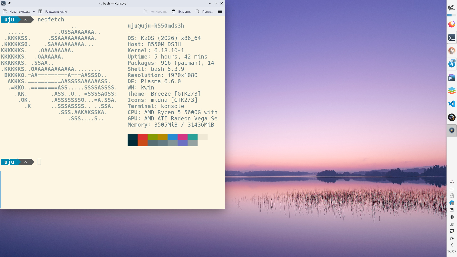 На третьем обоина и neofetch.