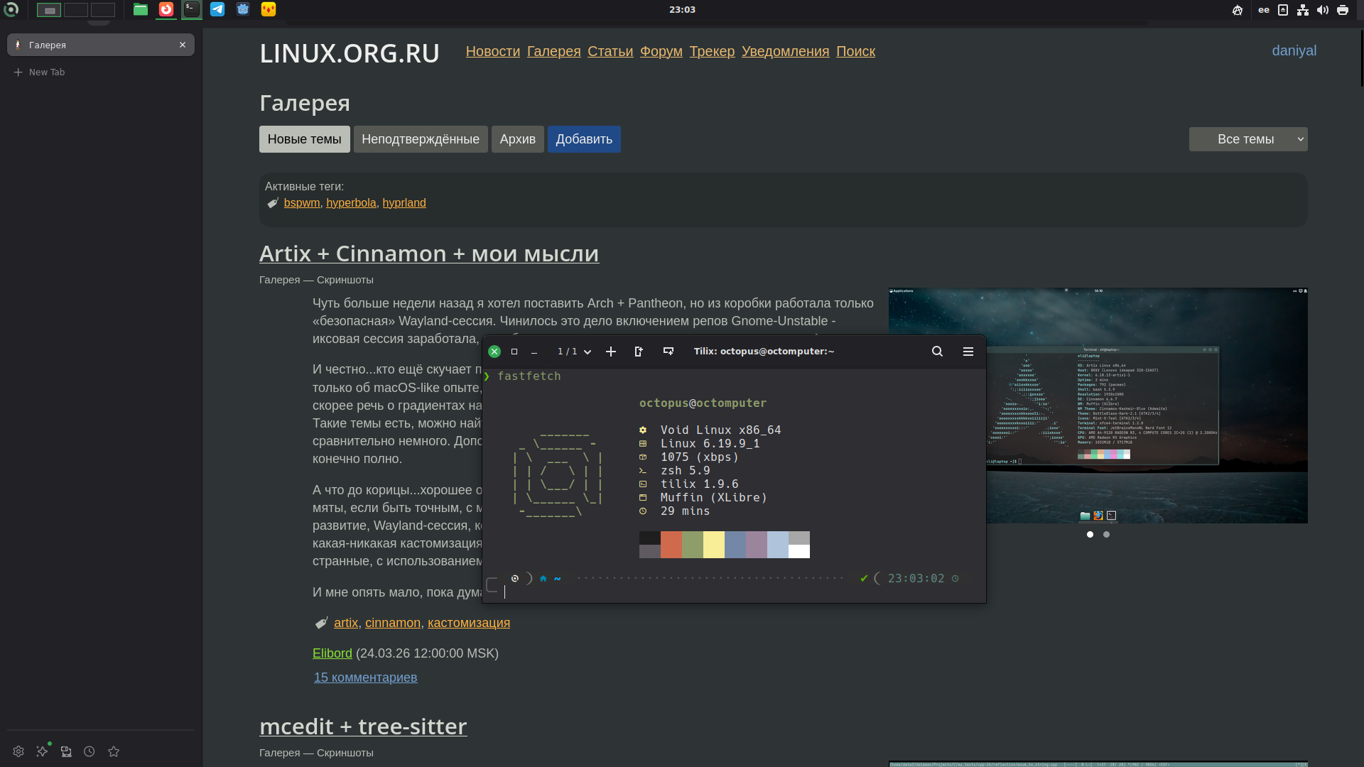 В общем, решил я ради прикола поставить гном и удалить, в итоге гном мне всю систему похерил. Решил переустановить и чё-то так в моменте лень стало снова bspwm настраивать, что я махнул ручкой и поставил Cinnamon. Всё так же приятен, всё так же прост, всё так же удобен, но теперь с XLibre.