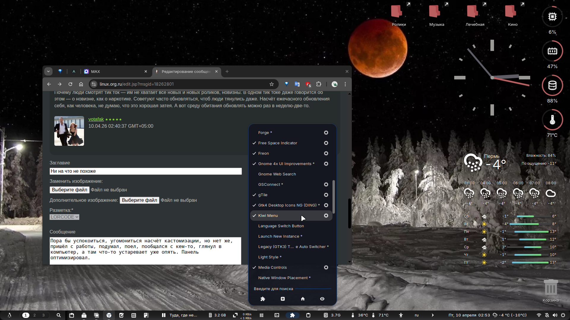 Пора бы успокоиться, угомониться насчёт кастомизации, но нет же, пришёл с работы, подумал, поел, пообщался с кем-то, глянул в компьютер, а там что-то устаревает уже опять. Панель оптимизировал.