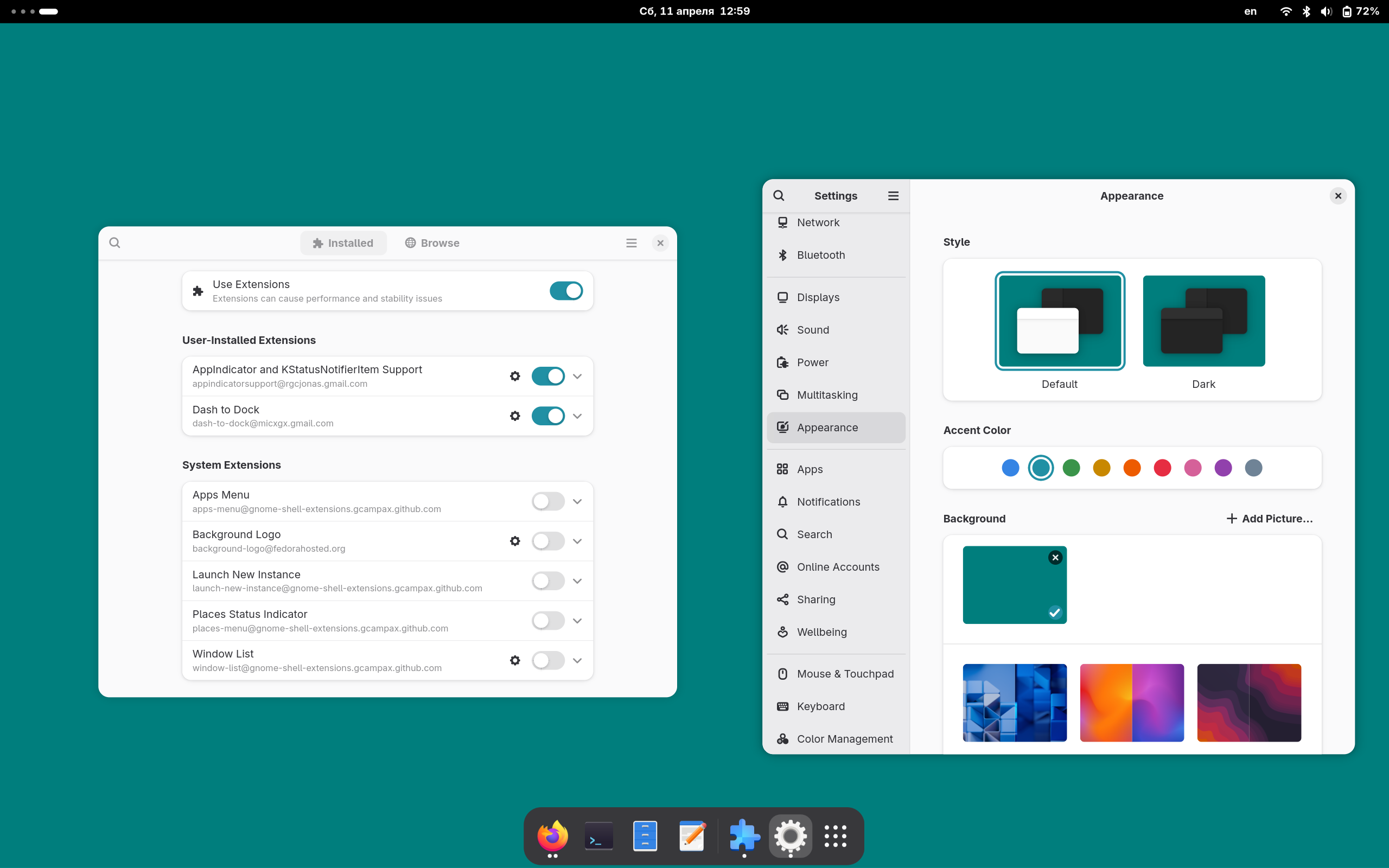 Человек долго выбирал между кандидатами. В конце концов, он не смог изменить своей интуиции и, рискуя быть осмеяным и оплёваным, выбрал GNOME. Человек всегда хотел думать иначе, но его финансовое состояние оставляет желать лучшего. Поэтому человек решил сам пойти к этой горе и подумать схожим с инакомыслием образом. Панелька сверху, док снизу [4], достигнутое практически нулевым уровнем кастомизаций, а значит — практически нулём приложенных усилий. Программы, что выглядят единообразно с остальной системой [2].