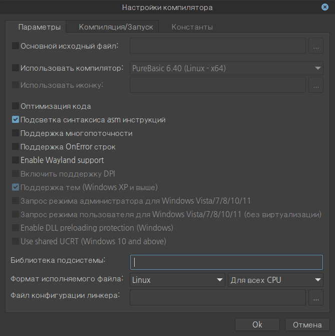 - Поддерживает создание оконных и консольных приложений и библиотеки функций (so, dll).