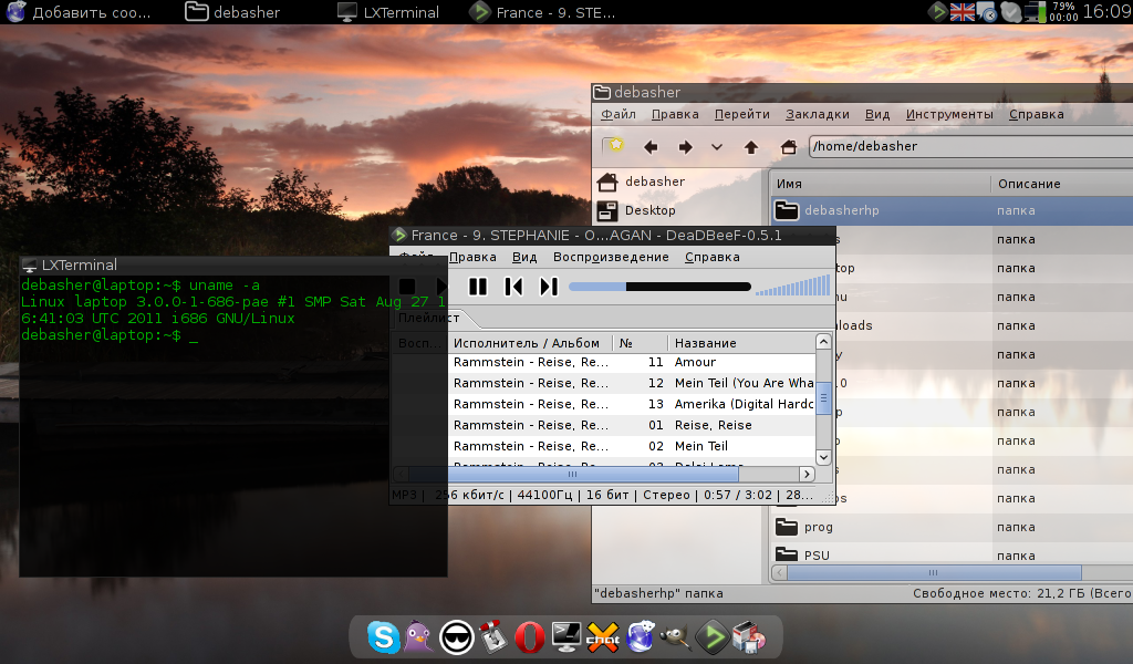 pcmanfm - файлы + обоя;